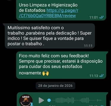 Com atendimento personalizado, agilidade e compromisso com a satisfação do cliente, a Urso Higienização de estofados se tornou sinônimo de confiança e excelência em São José do Rio Preto e região.